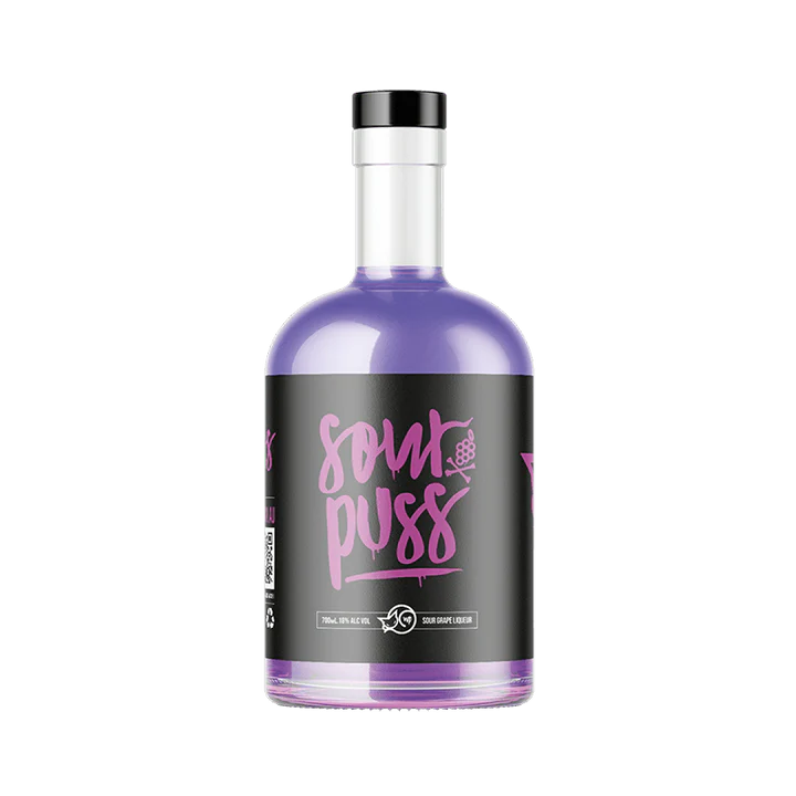 Sour Puss Grape is a sour Liqueur infused with flavours of grape. Sure to tease your tongue with a sweet fruity burst, then a sudden sour tang that will pucker your lips and shock your senses.