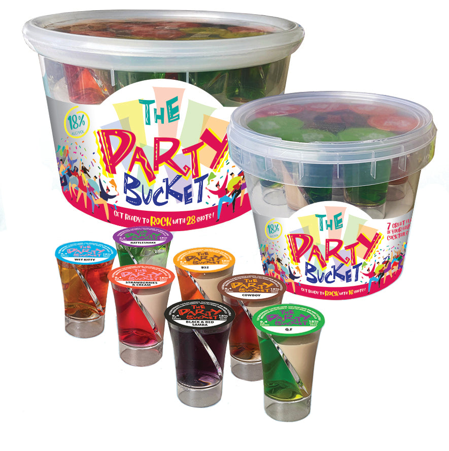 The ultimate party starter! With an assortment of delightful flavours included in this unique shot bucket you are sure to impress all your party guests! 7 varieties make up a total of 16 shot classics per bucket - 18% ABV sealed colourful 30mL shots. Flavours include: Cowboy, QF, Wet Kitty, B52, Strawberry & Cream, Red & Black Samba and Rattlesnake.